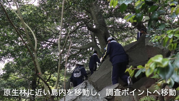 本校では、希望者を対象として京都府沖に位置する冠島をフィールドに、オオミズナギドリの生態調査に取り組んでいます。調査では、巣穴の位置確認や個体標識、繁殖状況の記録などを通して、海洋環境と海鳥の関係について学び、保全の重要性を考察しています。