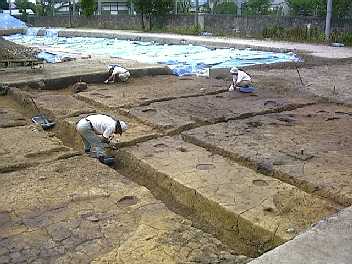 | 当ページは、(財)京都府埋蔵文化財調査研究センターの発行による、8月22日に実施された現地説明会用の資料「平安京跡右京一条三坊九・十町」(京埋セ現地説明会資料No.99-07)を元に作成したものです。 |