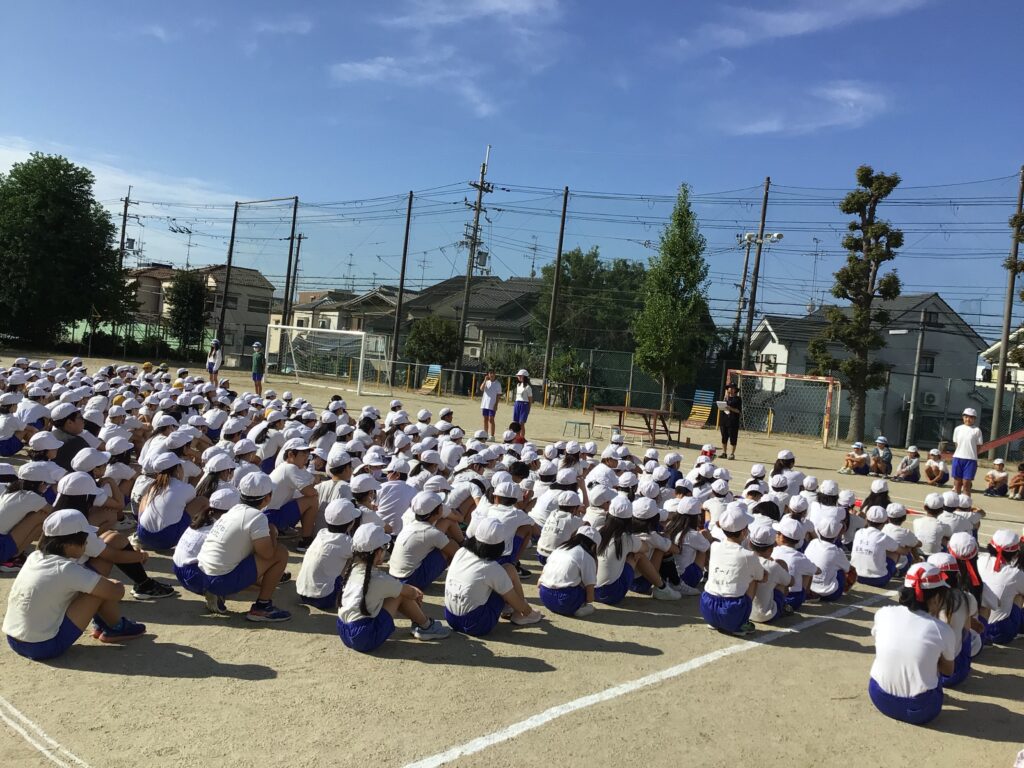 10月2日(木)、運動会に向けて全校体育がありました。今回は、開会式の動きの確認をしたり、準備体操の練習をしたりしました。その後、応援練習をしました。応援練習では、各色の団結した大きな声が運動場全体に響きわたっていました。暑い中でしたが、きびきびと行動することができていました。